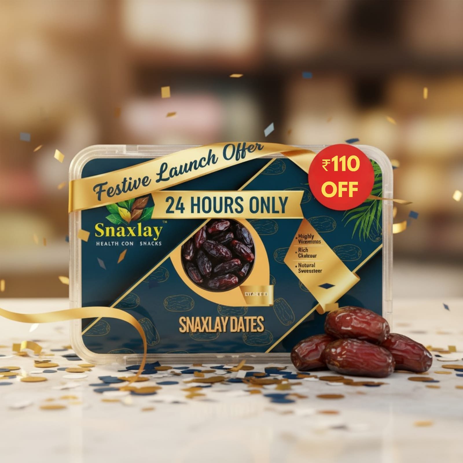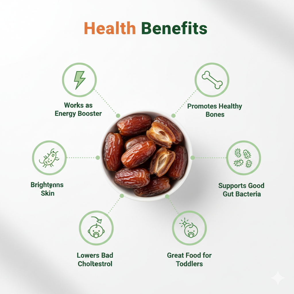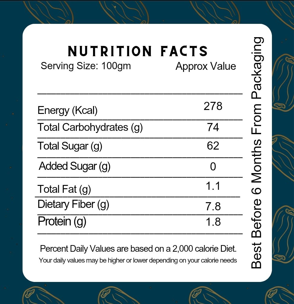 Discover the rich flavor and natural sweetness of Snaxlay Premium Dates — a wholesome, energy-boosting snack packed with essential nutrients. Handpicked for superior quality, these dates are a natural sweetener and a perfect alternative to processed sugar. Ideal for snacking, baking, or adding to smoothies, they are rich in fiber, vitamins, and antioxidants, supporting a healthy lifestyle. Enjoy the taste of nature’s finest treat — healthy, delicious, and 100% natural.